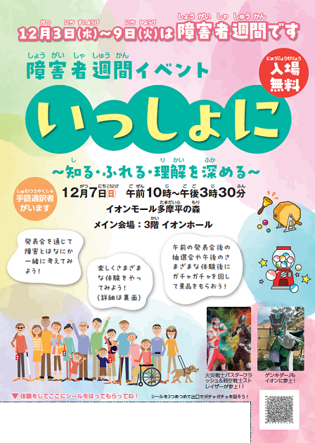 障害者週間イベント ”いっしょに” 12月7日 イオンモール多摩平の森3F